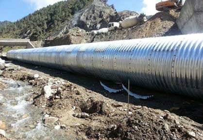 鋼波紋管由于其軸向波紋的存在,使得徑向承載力大大提高,同時由于其軸向波紋的存在,使其具有較好的橫向變形補償特性,因而具有較好的不均勻沉降變形的適應能力。但沉降值也要在一定范圍內(nèi),根據(jù)經(jīng)驗值,涵洞沉降值在100厘米內(nèi)。所以遇到特殊地基需要加固處理,尤其是軟土地基。