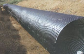 3、鋼波紋涵施工時,采用分段施工的辦法,預(yù)先在原拱涵基底用角鋼并排兩根,長度依據(jù)涵長確定。作鋼質(zhì)涵管推進(jìn)時的滑軌,波紋涵管管徑依據(jù)工程需求可有分歧的規(guī)格,束裝管管徑為0.5m--2.5m;每節(jié)管長度3米左右。采用內(nèi)(外)法蘭螺栓銜接。拼裝涵管管管徑為3m--8m。每個圓周偏向有4---15塊板構(gòu)成,板與板搭接高強螺栓緊固。