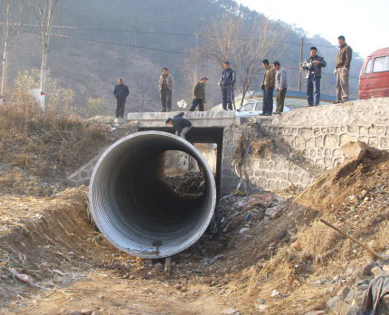 圓管涵的管身通常由鋼筋混凝土構(gòu)成,管徑一般有0.5米-3米,管徑的大小根據(jù)排水要求選擇,原多采用預(yù)制安裝,預(yù)制長度通常為 2米。當(dāng)采用0.5米或0.75米管徑時(shí)用單層鋼筋,而孔徑在1米及1米以上時(shí)采用雙層鋼筋,由于施工復(fù)雜且涵洞壽命較短,很多地區(qū)以選用鋼制波紋管涵替代。