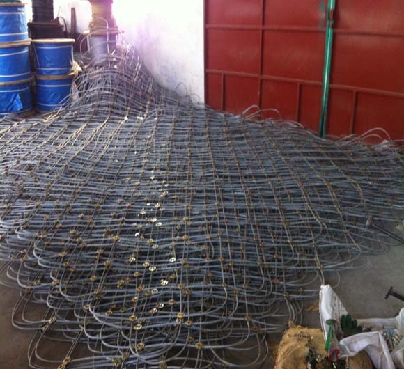 3、鋼絲繩與鋼絲繩上下交錯(cuò),用卡扣固定牢固