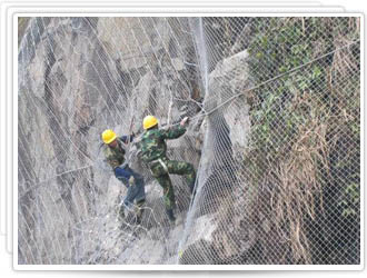 通過鋼筋(可施加預(yù)應(yīng)力)和/或鋼絲繩錨桿(有邊沿支撐繩時(shí)采用)、專用錨墊板以及必要時(shí)的邊沿支撐繩等固定方式,將作為系統(tǒng)主要構(gòu)成的柔性防護(hù)網(wǎng)覆蓋在有潛在地質(zhì)災(zāi)害的坡面上,從而實(shí)現(xiàn)其防護(hù)目的。適用于具有溜坍、崩塌、淺層滑動、危巖落石等潛在地質(zhì)災(zāi)害的土質(zhì)或巖石邊坡加固和防護(hù) 。主要構(gòu)成錨 桿:一般采用一端(外露段)帶加工螺紋的Φ25/28普通螺紋鋼筋錨桿,也可采用Φ25精軋螺紋鋼筋(如GEWI錨桿),并根據(jù)需要進(jìn)行熱鍍鋅防腐處理,成孔困難時(shí)可采用自進(jìn)式中空錨桿;